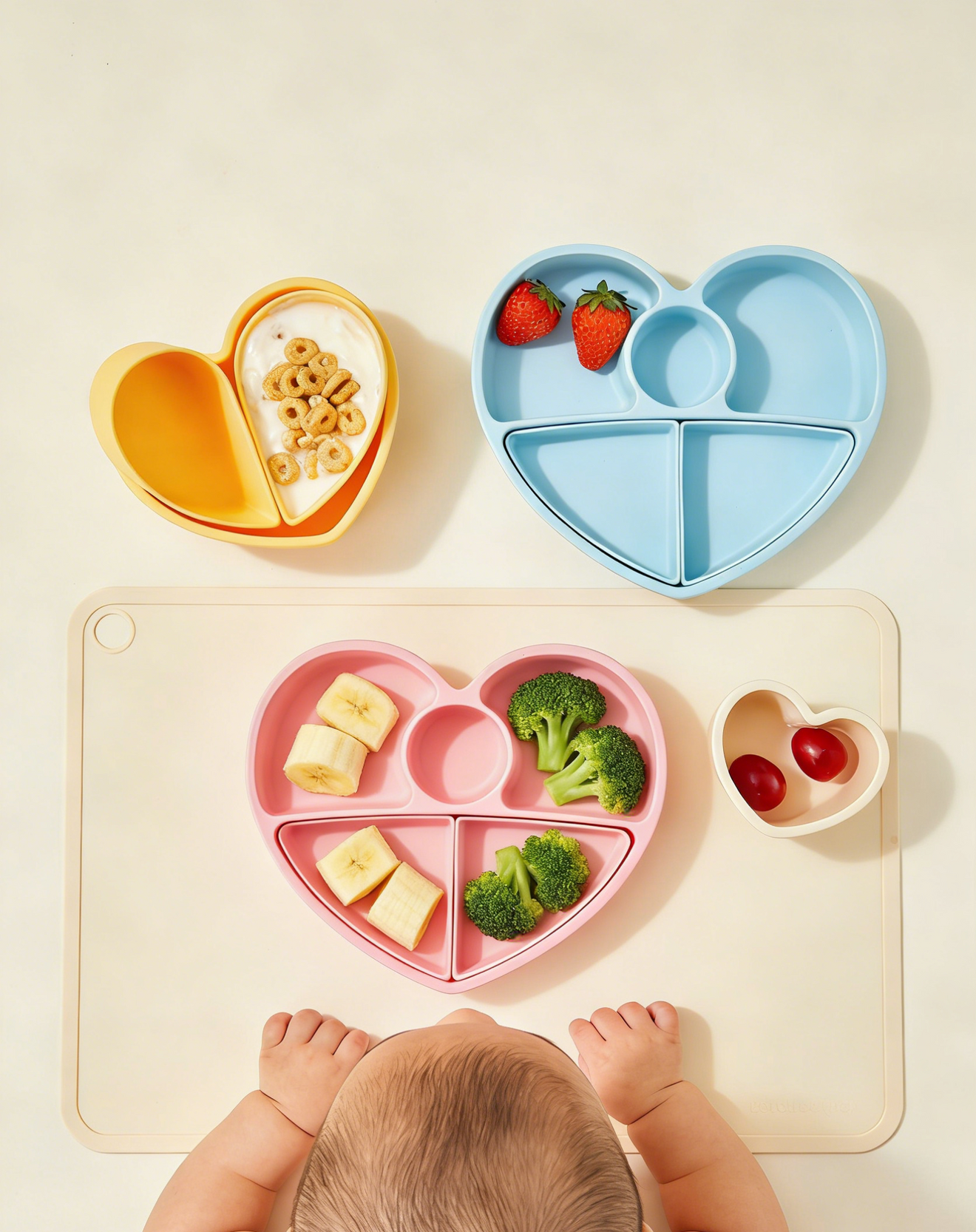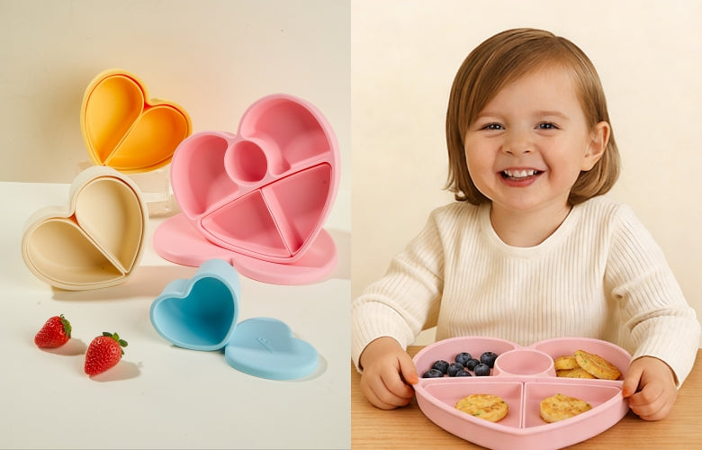 Our heart-shaped plate is made from Platinum-Cured Food-Grade Silicone, with a strong suction base and removable divider — perfect for growing appetites and independent eaters.